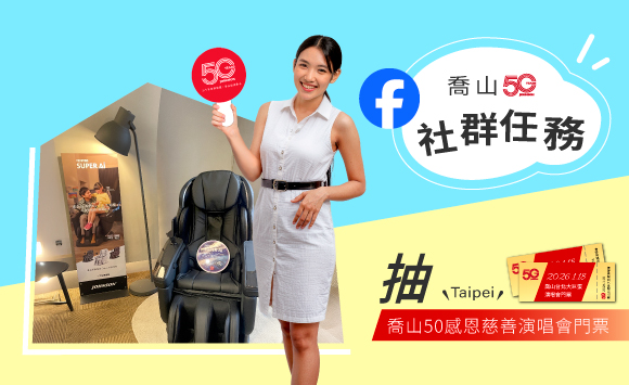 喬山50感恩慈善演唱會系列活動|FB粉專任務挑戰,抽台北大巨蛋演唱會門票!