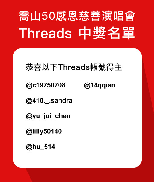 特別加碼,追蹤喬山 Threads抽演唱會門票