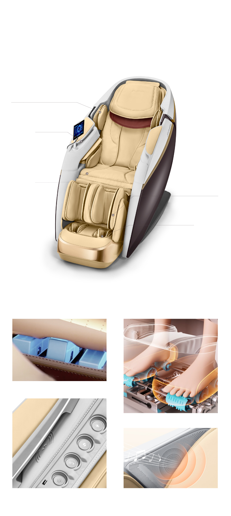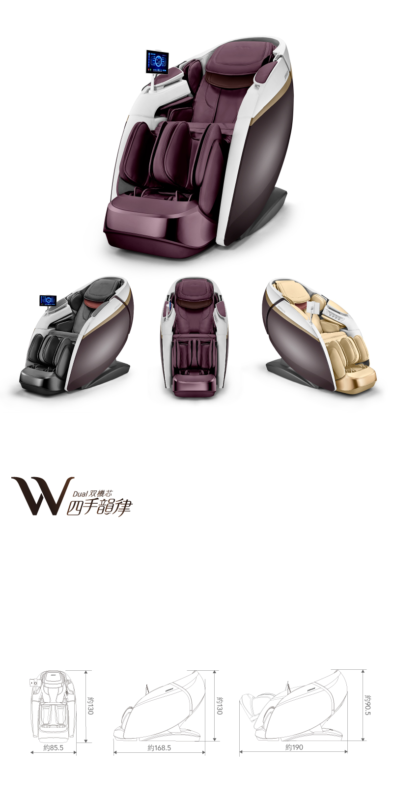 - .上下設置4D/3D双V按摩機芯