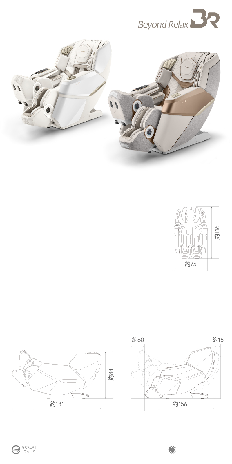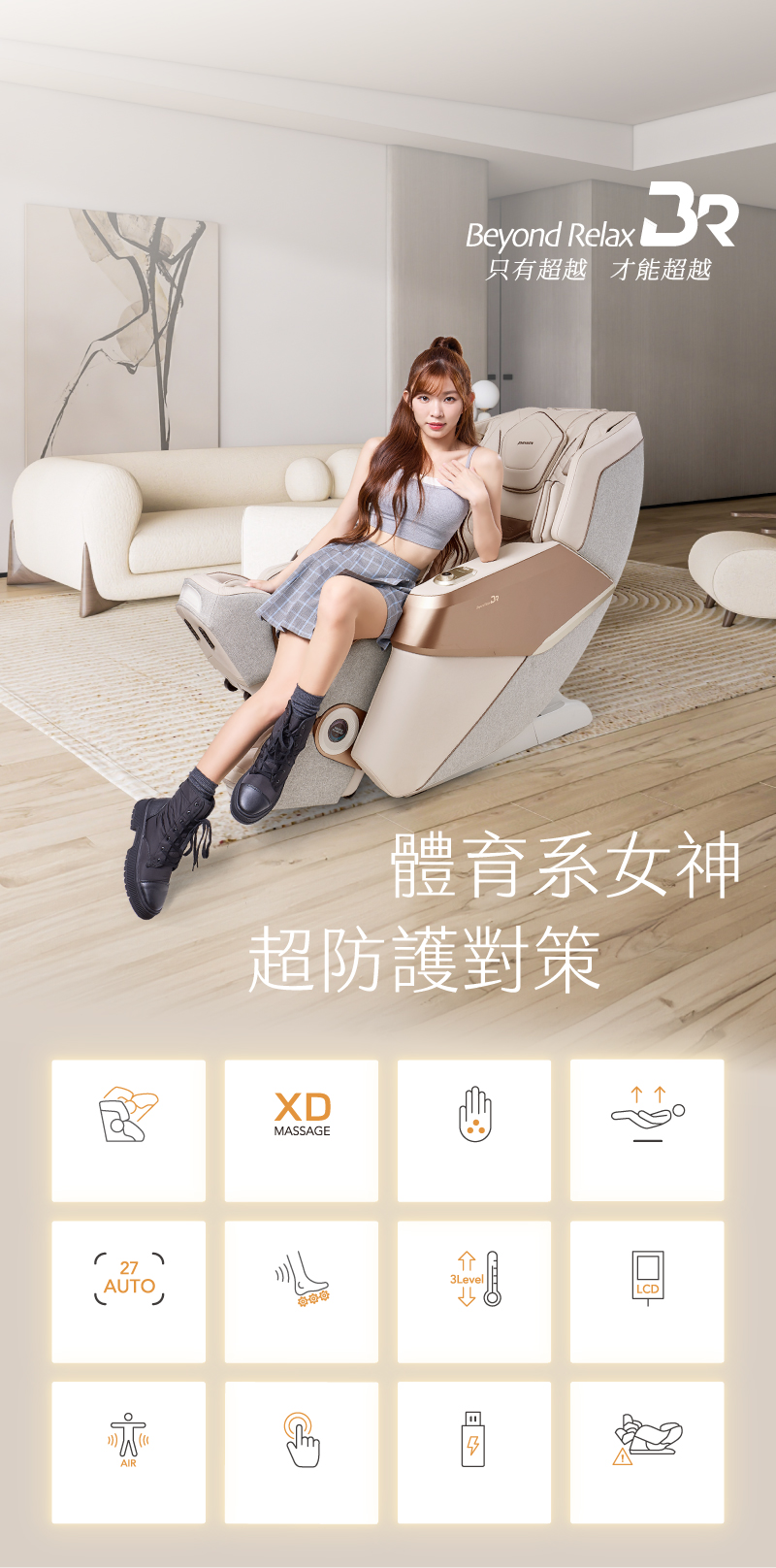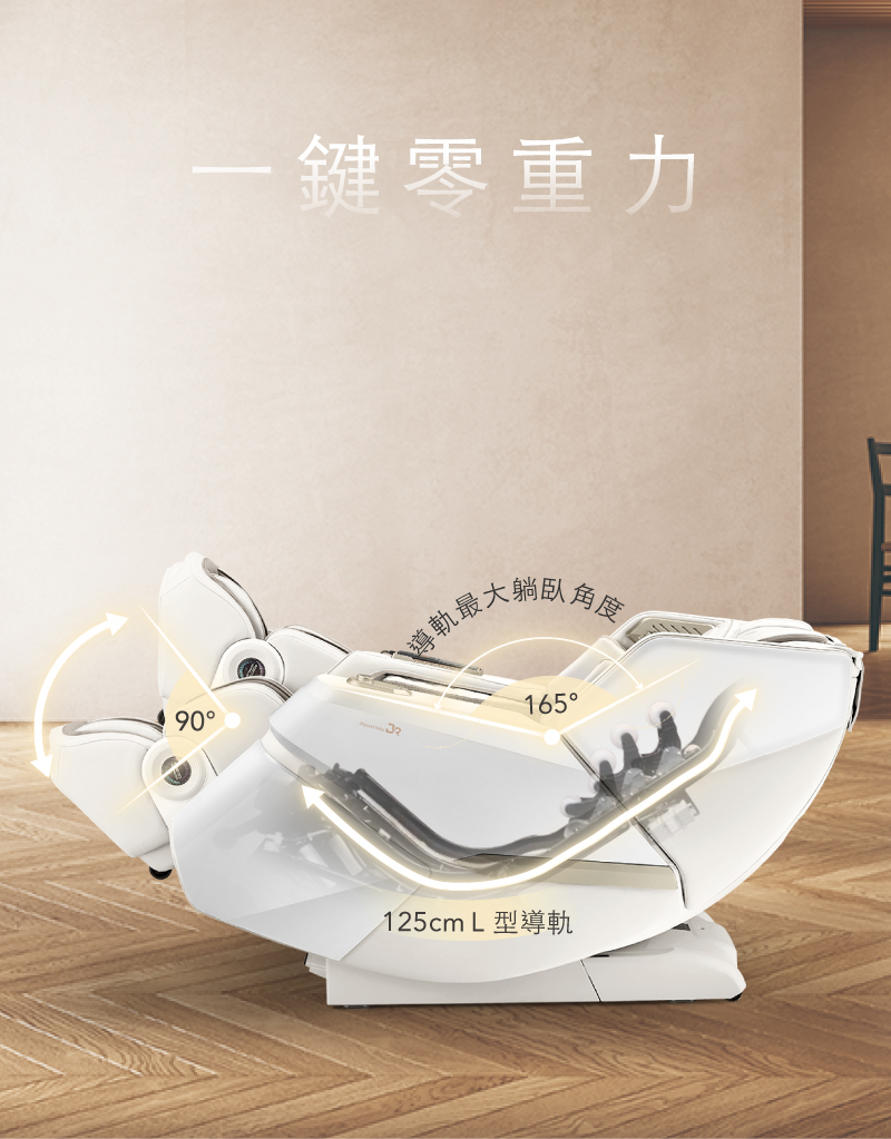導軌躺臥角度達165°,搭配雙足90°拉伸,超越所有按摩椅體感