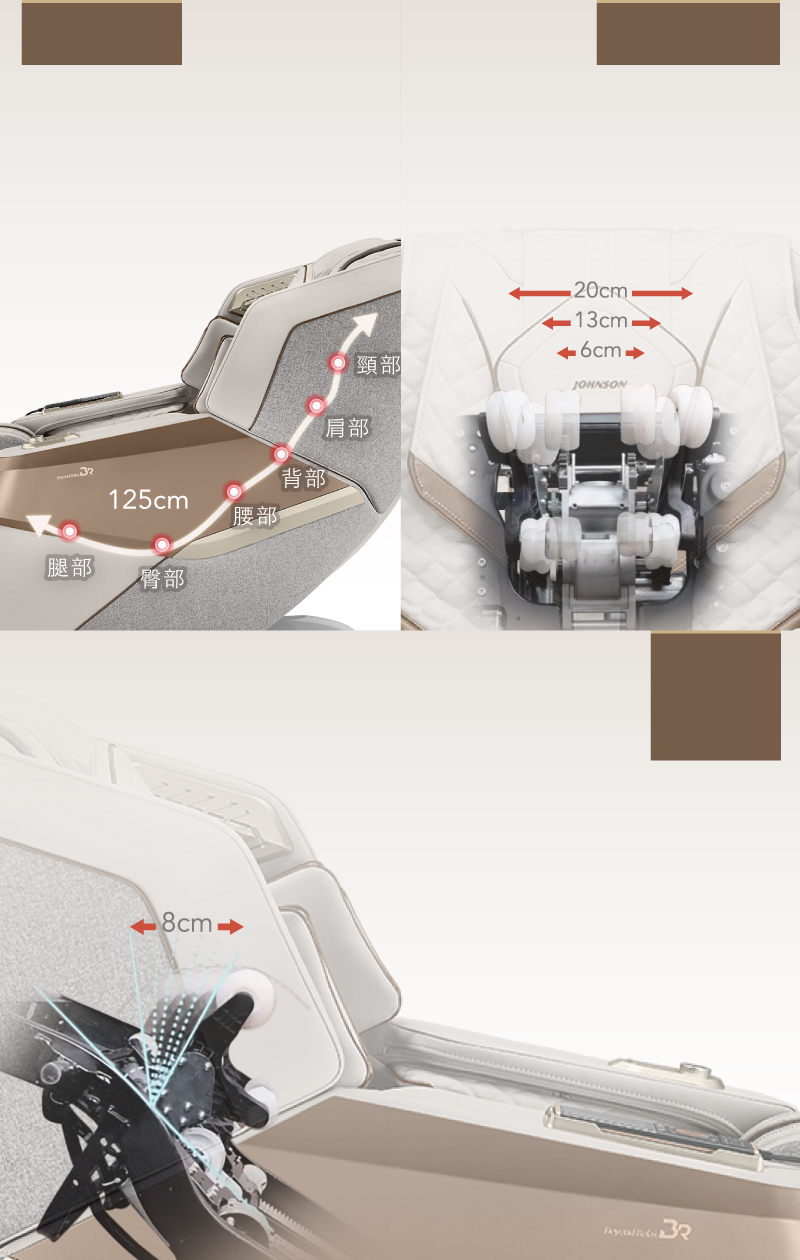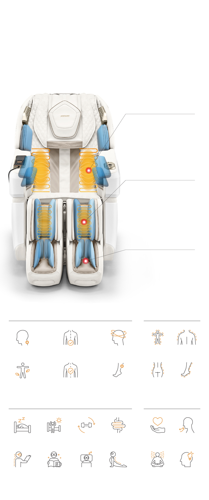從頸肩部至背腰、臀腿,精準貼身按摩
