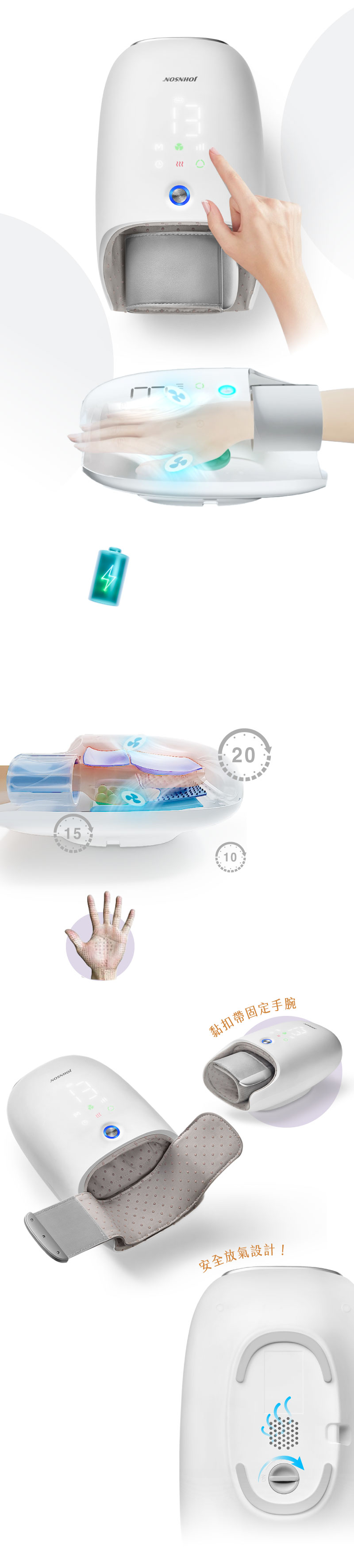氣囊按壓6種力道強度調整,新增手腕氣囊,掌心與手腕也能同步舒緩
