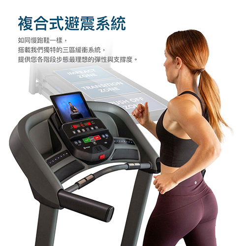 安靜、高效運行的 Johnson Drive System會感應跑者的每個腳步及速度來作即時調整,讓你踏在上面不會有延遲或顛簸的感受。